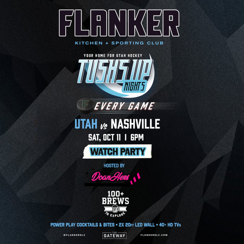 Hockey fever is hitting and Flanker is the ultimate spot for Tusk Up Nights! Watch Utah take the ice against Nashville at our high-energy watch party hosted by Doan Hers. Feel every check, slap shot, and breakaway on our 20-foot LED walls and 40+ HD TVs that put you right in the rink. Keep your spirits high with Power Play cocktails, crave-worthy bites, and 100+ brews to choose from. This is where fans unite, chants break ice, and every goal shakes the room.